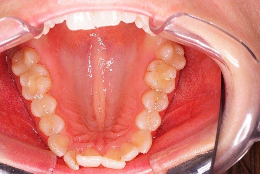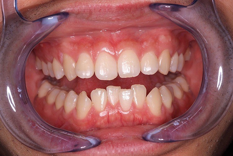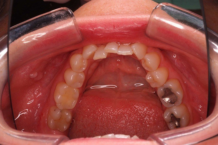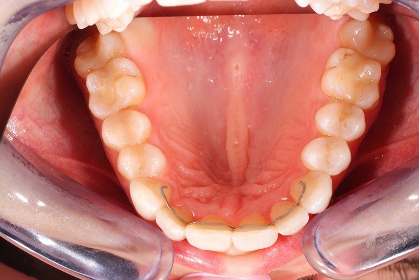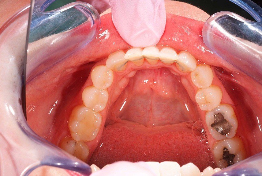 The patient wanted straight teeth in the front in the lower jaw.